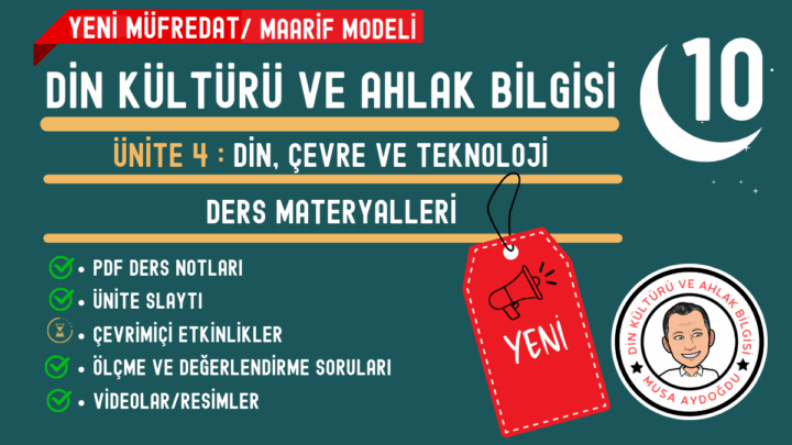 10.Sınıf 4.Ünite / Din, Çevre ve Teknoloji ünitesi kapsamındaki DKAB Maarif Modeli müfredatına göre hazırlanmış ders materyalleri bu...