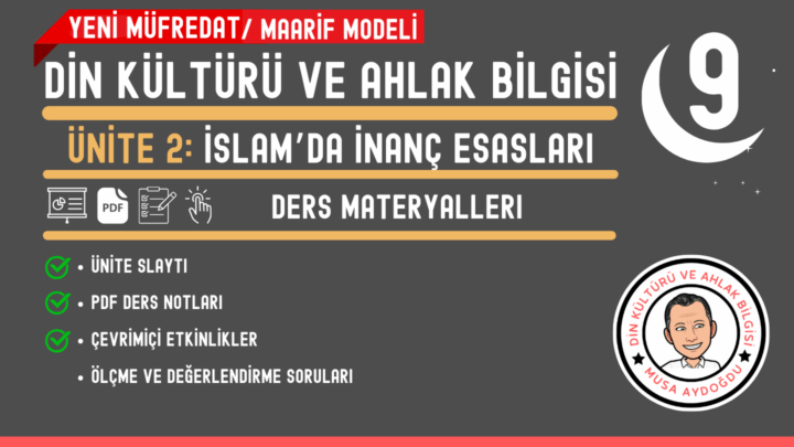 9.Sınıf 2.Ünite / “İslam’da İnanç Esasları” ünitesi kapsamındaki yeni müfredata göre hazırlanmış ders materyalleri bu sayfada yer alıyor....